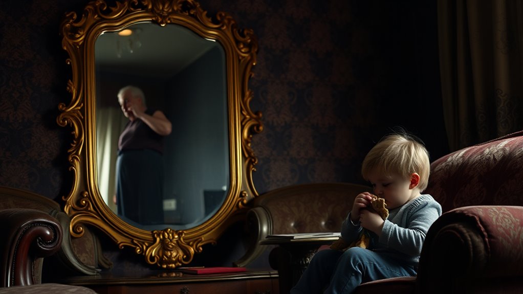 Grandchildren often serve as a vital source of narcissistic supply for grandparents with narcissistic tendencies. They provide admiration, unconditional love, and attention, which help narcissists boost their self-esteem. You might notice your grandparents relying heavily on your approval to feel validated, often seeking praise or admiration without offering genuine care in return. These relationships are transactional—grandparents use your affection to maintain their self-image, not necessarily to connect emotionally. They may manipulate or control to guarantee they receive constant validation, often creating dependence. This dynamic can make you feel pressured to meet their needs at the expense of your own. Recognizing the emotional manipulation involved can empower you to establish healthy boundaries. Furthermore, understanding that these relationships are influenced by underlying personal growth issues can help you develop resilience and clarity in navigating these complex dynamics. Developing awareness of interpersonal patterns can also aid in recognizing manipulation tactics and protecting your emotional well-being. Being aware of these patterns can also enable you to protect your emotional well-being and avoid falling into codependent cycles. An awareness of family dynamics can assist in understanding the root causes of such behaviors and foster compassion. Ultimately, your role becomes that of a mirror reflecting their ego, rather than a person engaging in a reciprocal relationship.