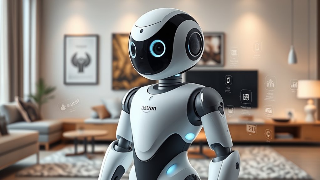 As I picture the sleek curves of the Astro robot gliding seamlessly through my home, I realize these features truly transform everyday living. From intelligent facial recognition to storytelling magic, each capability paints a vivid picture of a smarter, more connected future. With these innovations, I can imagine a world where my home feels alive, watching over me with friendly eyes and responsive gestures—making life not just easier, but genuinely more engaging.